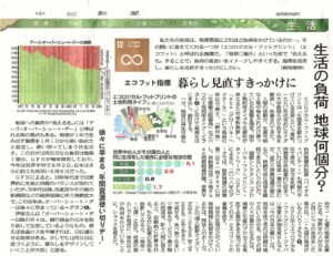 「生活の負荷 地球何個分 エコフット指標 暮らし見直すきっかけに」8月28日付の中日新聞と東京新聞掲載記事